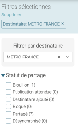 Visualisez rapidement le statut de partage de vos produits pour METRO FRANCE et, le cas échéant, les actions à entreprendre pour le bon partage de vos produits avec l'enseigne.